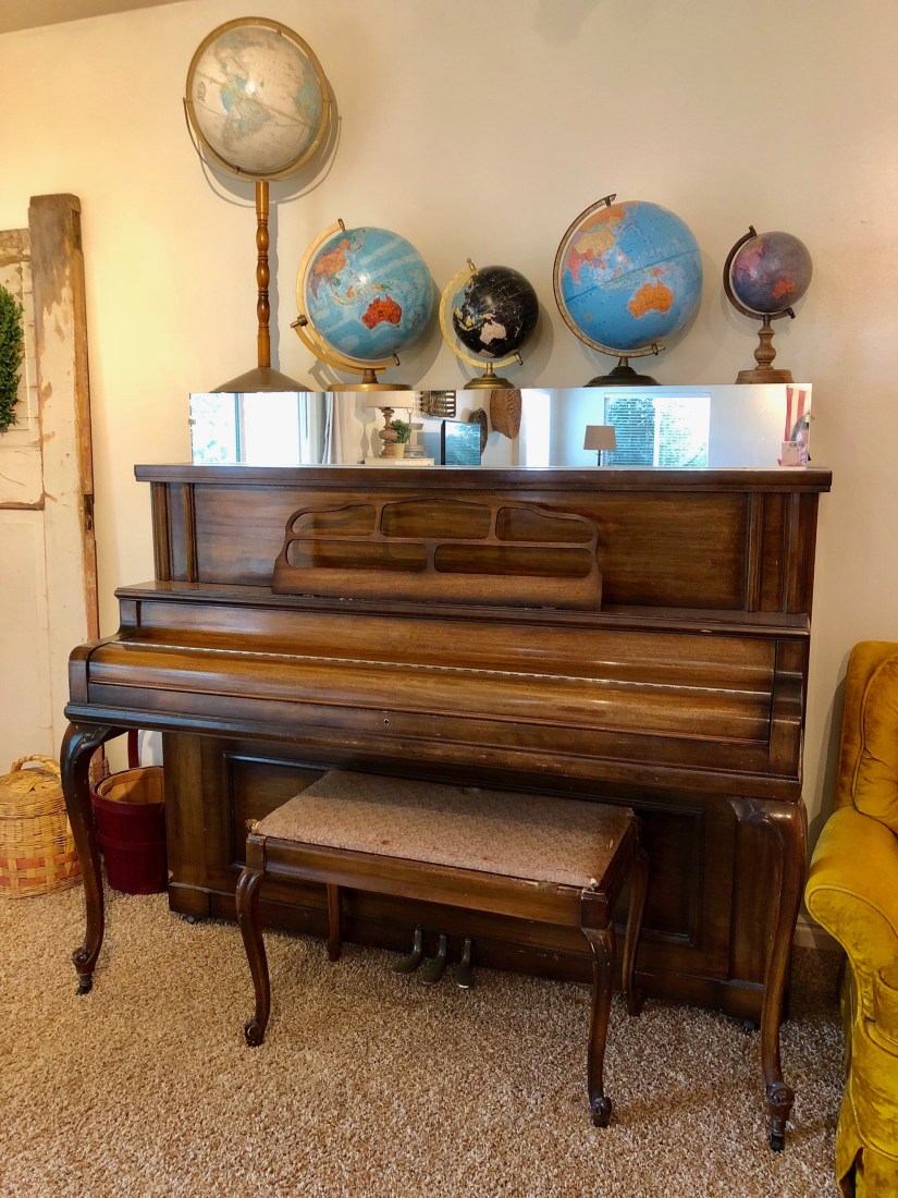 Good morning! This piano was my great grandmas… my mom learned to play as a child on it. It was in our home growing up, at my sisters for a bit and has been in my basement for about 17 years. No one plays at my house… but I ❤️ this piano! The history, the beat up bench cover, the keys that don’t sound tuned… it all tells a story. I’ve thought about painting it several times but I haven’t been able to bring myself to do it 😉