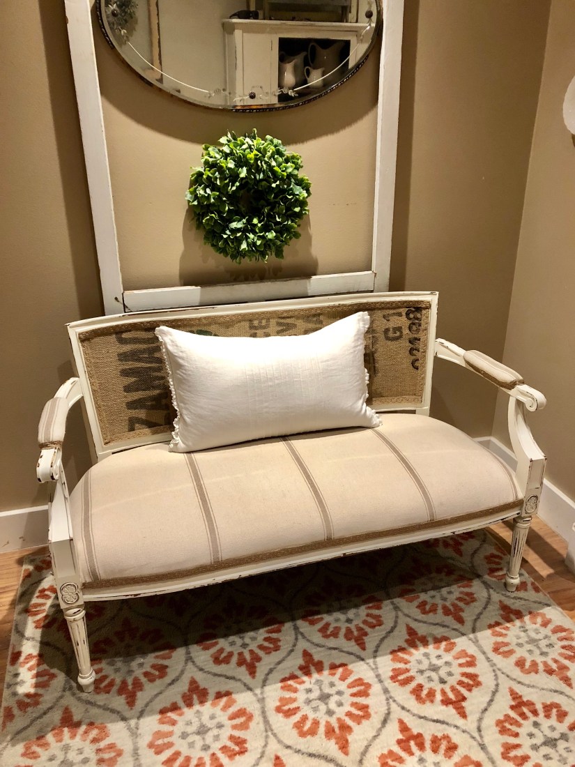 Good morning! I’ve said it before, and I will say it again… nothing stays the same around my house for long. My entry seems to get the brunt of it 😉 I saw this bench for sale on Facebook and I seriously had to have it! So… it was time to sell my adorable chairs I’ve loved and make a change. I really try hard to sell something when I bring something new in. My home isn’t very big, so it can feel cluttered really quick! That’s what I love about old furniture, and what I do. You’re not invested in a $1000 piece so you feel like you have to keep it. It’s fun to change things up and not go bankrupt 🙂 enjoy your Tuesday!