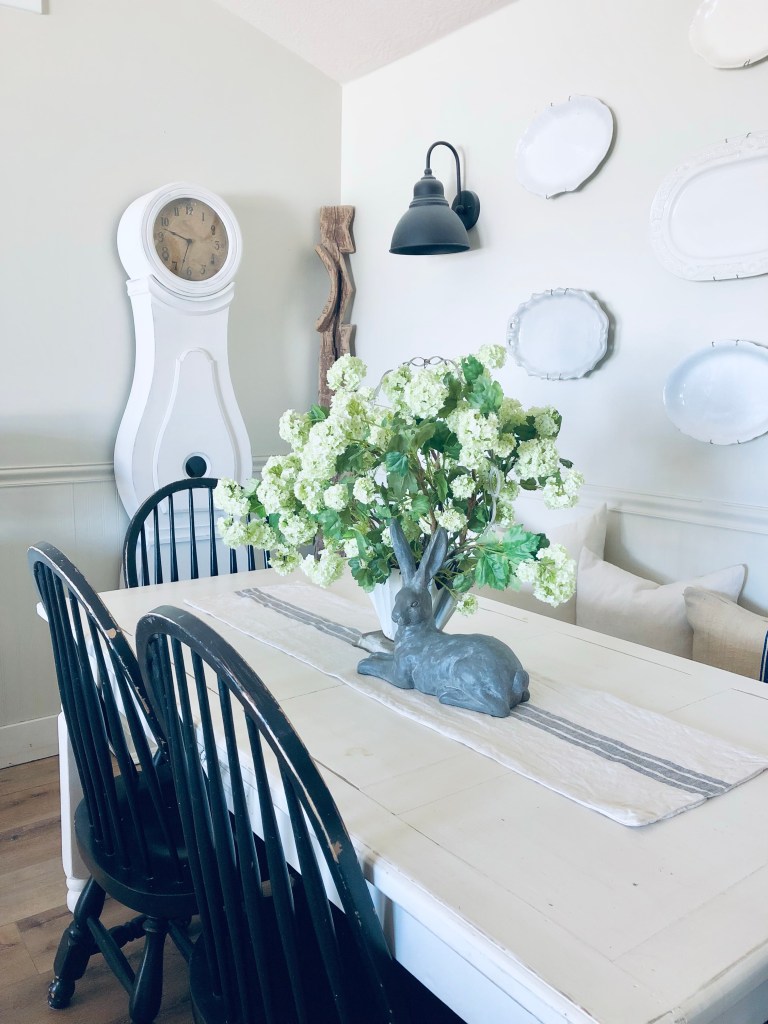 I opened my windows today… I feel like I can breath for the first time since October 🌱🐇🌷 Spring, you are my favorite #spring #finally #warm #birdsaresinging #springcleaning #diningroomdecor #moraclock #bunny #easter #easterdecor #ironstone #ironstonecrushin #handmedowncottage #furnitureattiffanys