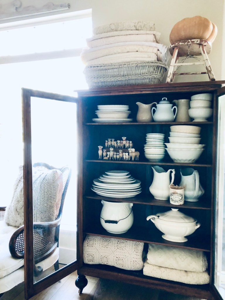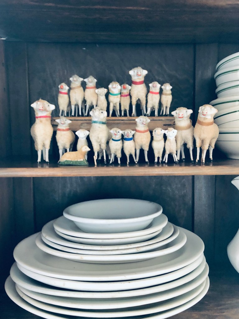 Happy November 🍂 The witch has moved out until next year and the sheep have moved in 🤍 I think my sheep family is complete… 20 and one little guy that’s laying down 🤍 #antique #putz #putzsheep #collection #sheep #iadorethem #antiquecabinet #fall #november #takingdownhalloweendecorations #waiting #christmascanwait #ironstone #ironstonecrushin #ironstonelove #ironstonecollection #neverenough #handmedowncottage #furnitureattiffanys