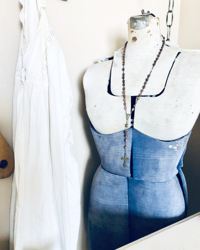 Happy Sunday friends! How gorgeous is this antique rosary? I am not Catholic, but I am a Christian 🤍 I may have found a new item to collect 🤍 #rosary #antique #dressform #vintage #newcollection #happysunday #handmedowncottage #furnitureattiffanys