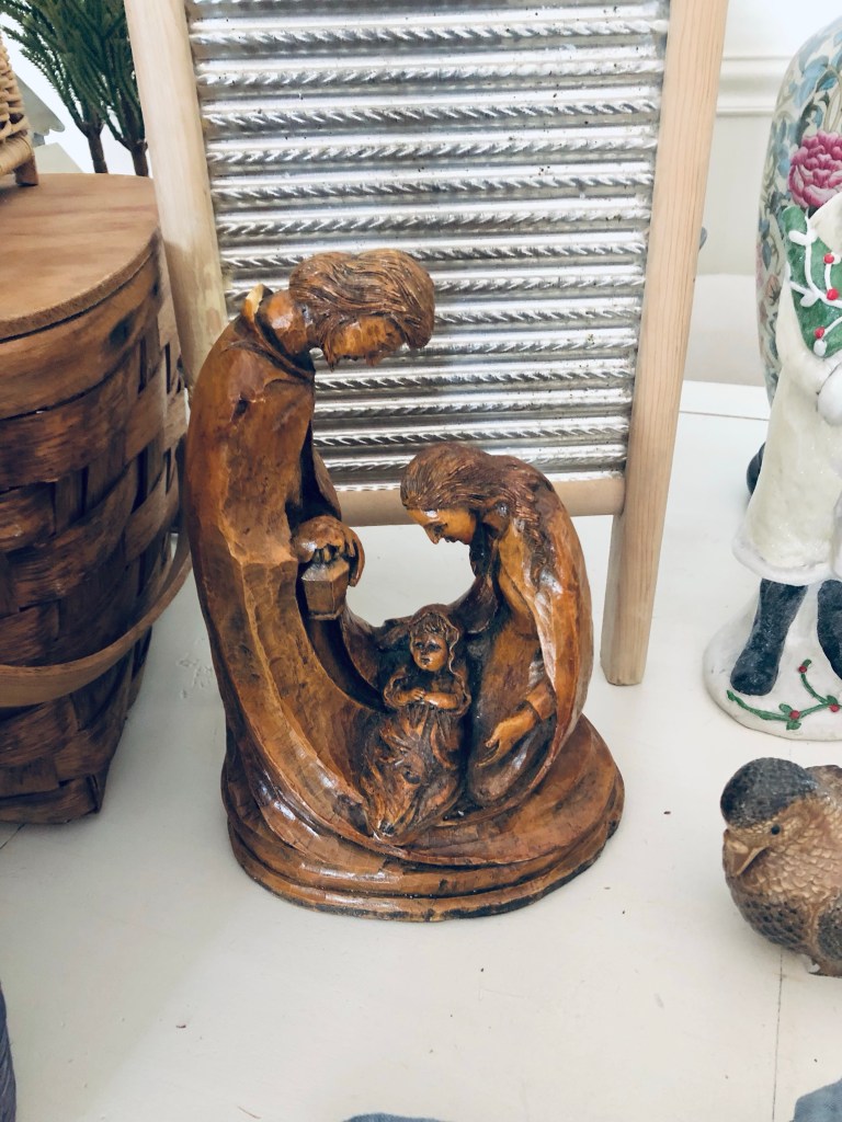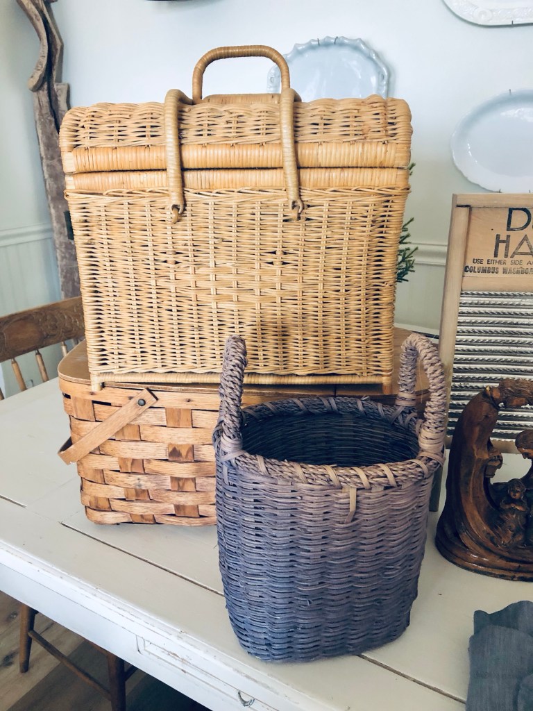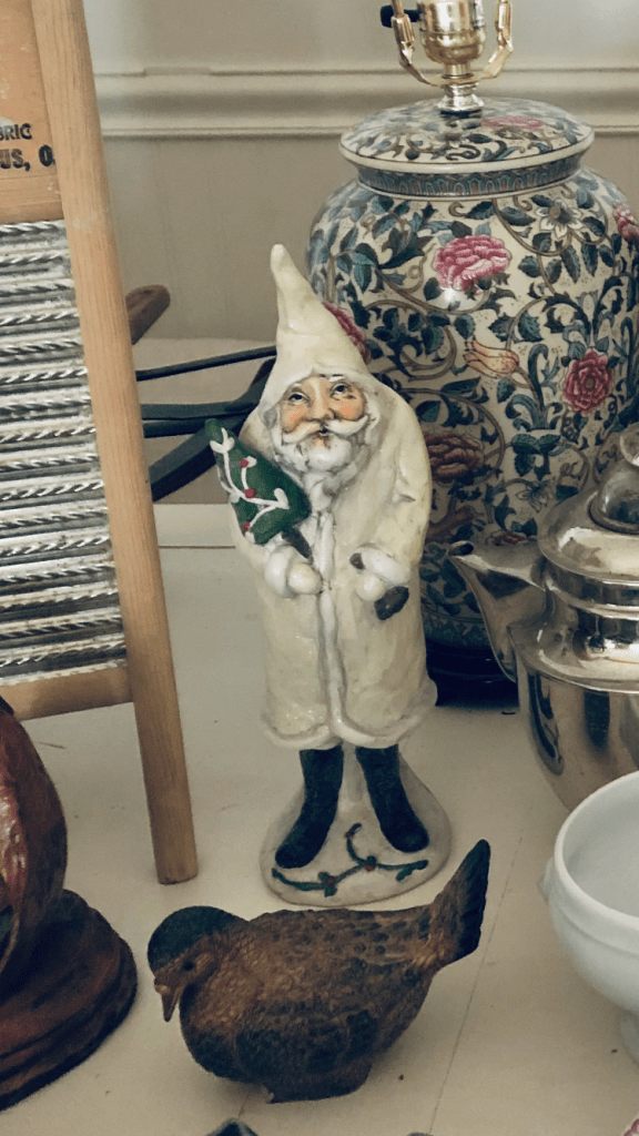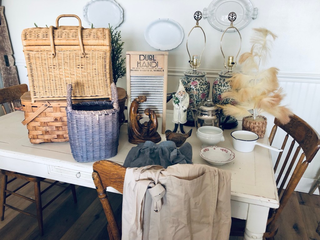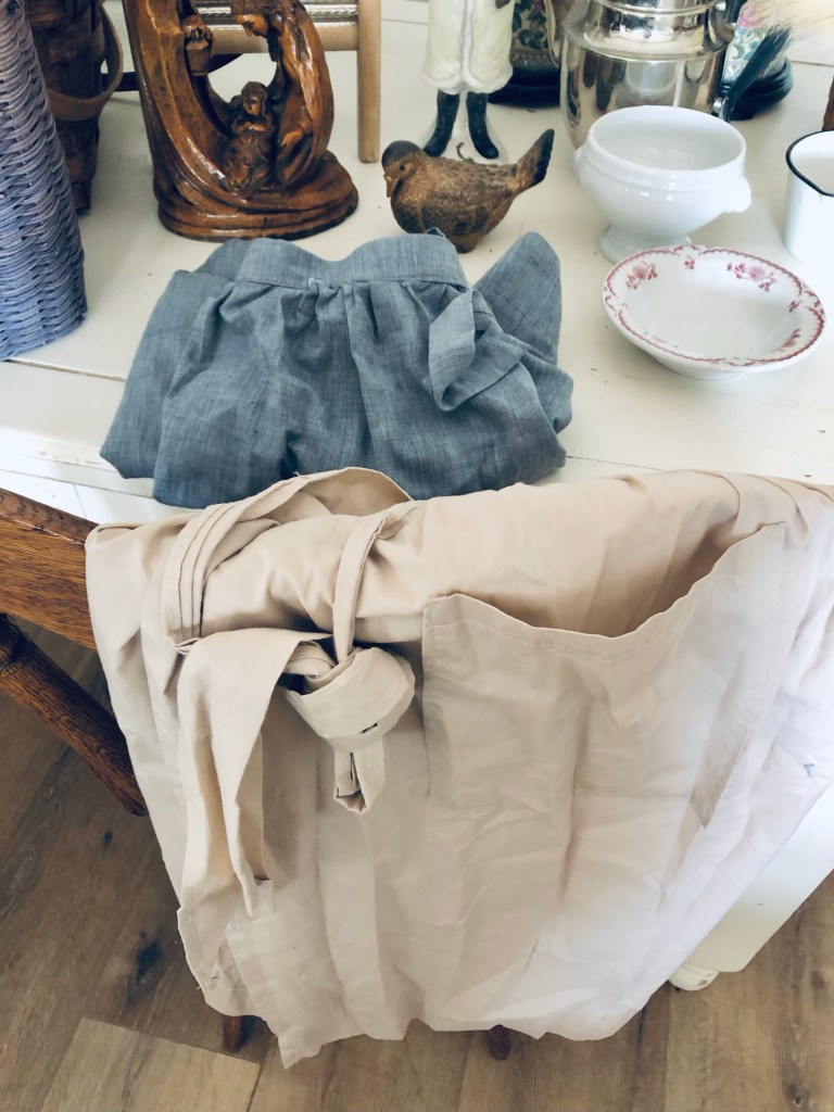Todays thrift haul 🤍 Not a huge haul but I found a few fun things. What would be your favorite? Mine are the handmade aprons! And how cute is Santa’s face?? 🎅🏻 #thriftstorefinds #difinds #deseretindustries #baskets #lamps #farmhousestyle #ironstone #thrifting #therapy #happythanksgivng #handmedowncottage #furnitureattiffanys