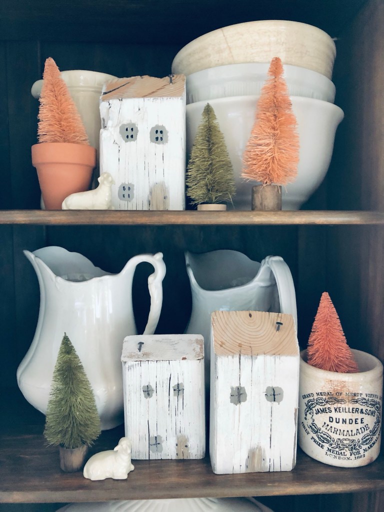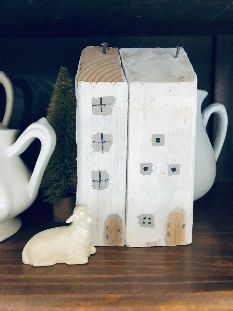 I made these sweet little primitive houses out of scrap wood a couple of years ago 🤍 I love them so much! Couldn’t you just move in?! Happy Sunday 🤍🏠#houses #primitive #home #farmhousechristmasdecor #handmedowncottage #furnitureattiffanys