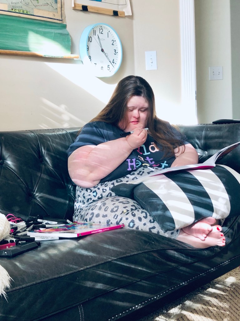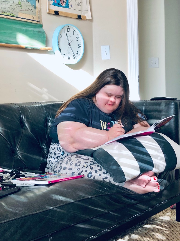 Checking to see if the marker is just right ❤️ Thank you for all the sweet well wishes for my girl. She is doing a little better today thank heavens ❤️ #downsyndrome #sick #poorgirl #onthemend #markersfordays #theyhavetobejustright #handmedowncottage #furnitureattiffanys #downsyndromelove