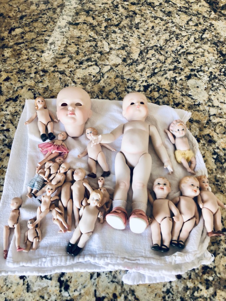 My small finds today 🤍 What would be your fav? Mine is the bag of dolls my sweet friend @deechz found for me! The things you find thrifting 🤣 #germandolls #kindacreepy #perfectforhalloween #thriftstorefinds #thrift #deseretindustries #difinds #bubblelights #vintage #pyrex #handmedowncottage #furnitureattiffanys #difriendsarethebest
