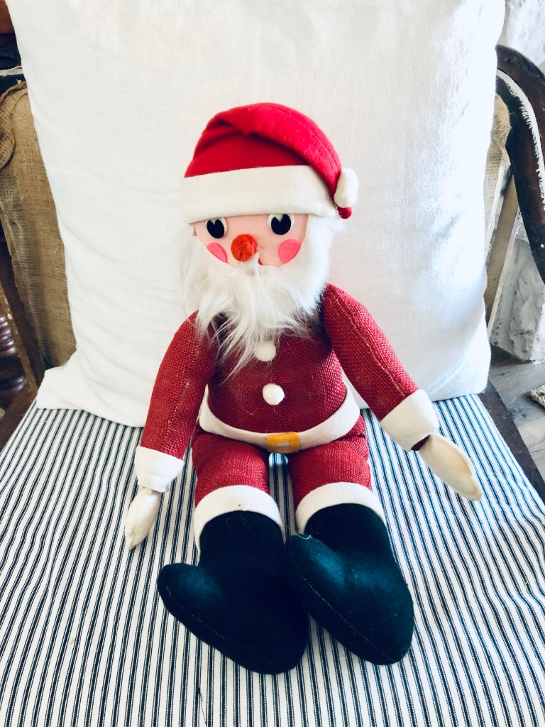 While thrifting the other day, I spotted this sweet vintage handmade Santa. I just HAD to give him a home ❤️🎅🏻 I think he was grateful #santa #handmade #rescue #thriftstorefinds #deseretindustries #isnthecute #thrifting #handmedowncottage #furnitureattiffanys #vintagesanta
