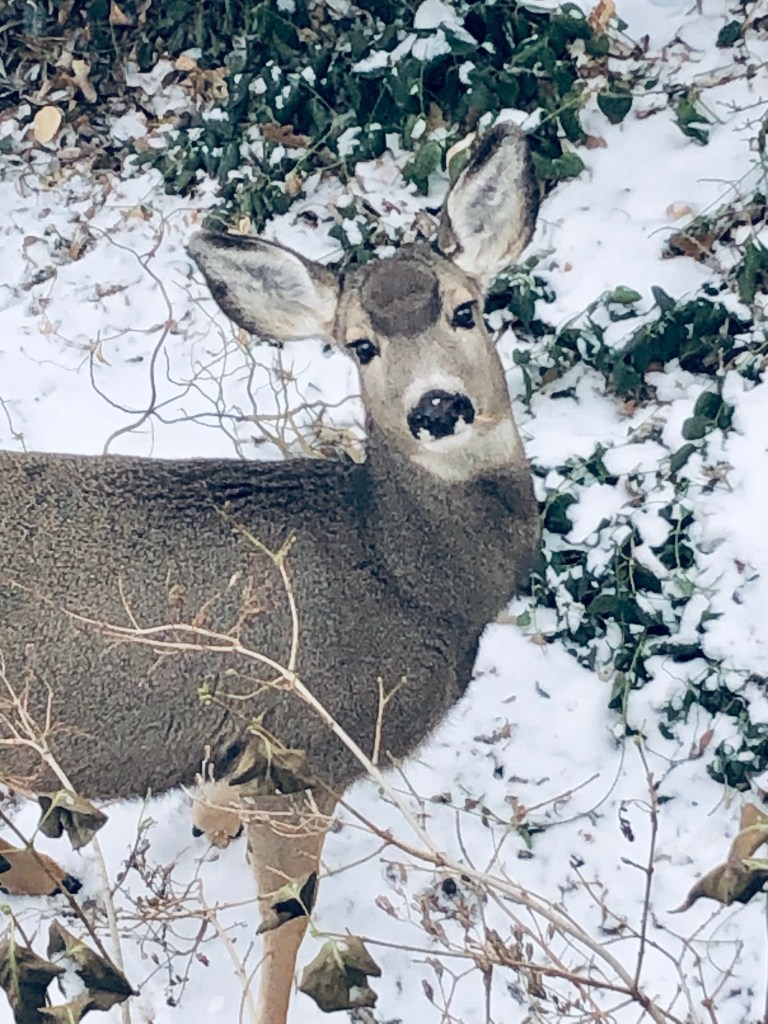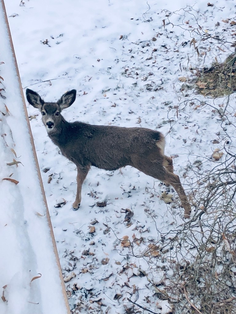 Merry Christmas Eve 🎄 Santa’s reindeer are checking in to see if we’ve been naughty or nice this year ❤️ Stevie looks worried 😉 #merrychristmas #christmaseve #reindeer #backyardfriends #steviethegirlkitty #cats #catsofinstagram #shesbeennaughty #sillycat #handmedowncottage #furnitureattiffanys