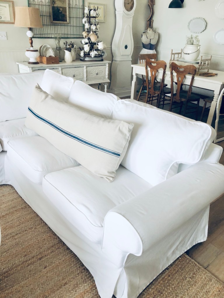 There is nothing better than a freshly cleaned slipcovered couch 🤍 #ikea #ektorp #loveit #couch #white #decor #clean #feelsgood #homedecor #farmhousewhite #handmedowncottage #furnitureattiffanys