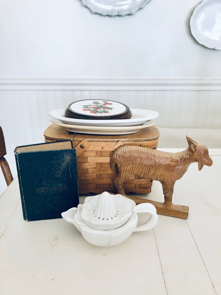When I say my thrift haul is small, I’m not exaggerating 😂 But I do love the items I picked up! What would be your fav? Mine is the Ben-Hur book published in 1887 🤍 #antiquebooks #benhur #old #strawberries #ironstone #juicer #oldbasket #thrifting #thriftstorefinds #notmuchouttheretoday #thursdaythrifting #deseretindustries #handmedowncottage #furnitureattiffanys