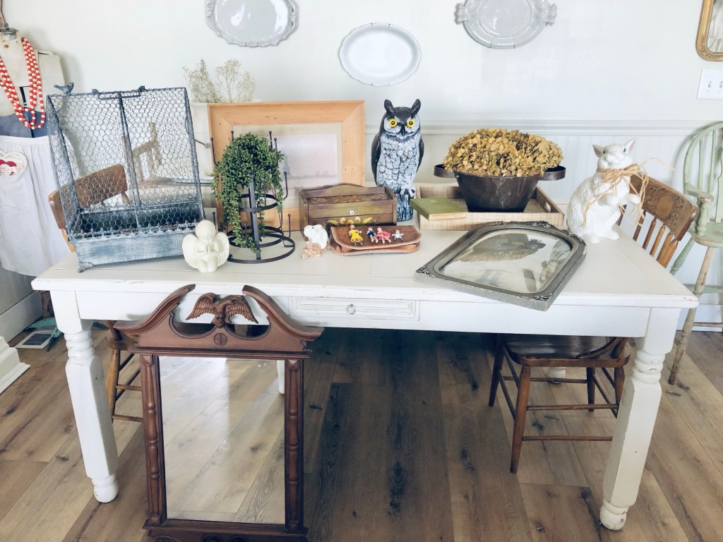 My Friday thrift haul 🤍 What would be your fav? Mine is a tie between that little antique doll family and the antique picture of that sweet lady 🤍 to be fair, I love love love the dried hydrangeas too 🤍 #thrifting #friday #thriftingfinds #deseretindustries #antiques #vintage #vintagephoto #nyc #handmedowncottage #furnitureattiffanys