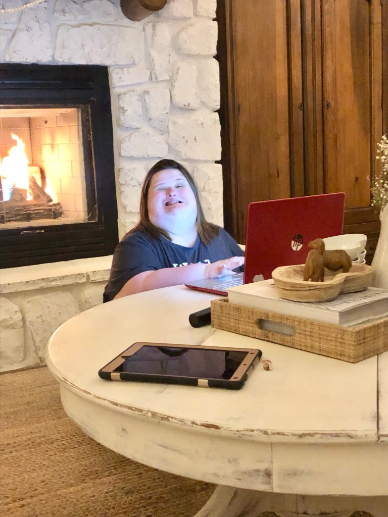 Our Friday night entertainment ❤️ We love our girl! #sweetgirl #downsyndrome #loveher #fridaynight #nowhereidratherbe #dowmsyndromerocks #shelovestosing #handmedowncottage #furnitureattiffanys