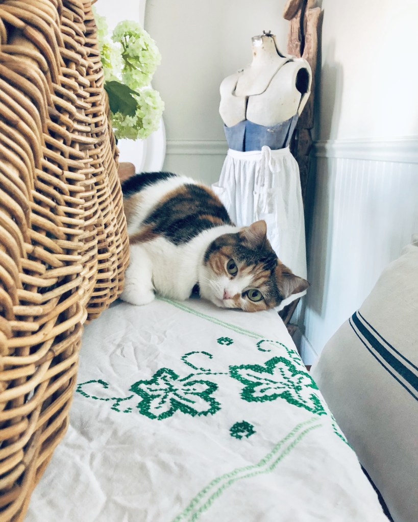 Well hello there 🤍 #steviethegirlkitty #shesuprisedme #goodmorning #cats #catsarefunny #takingarest #catsofinstagram #cat #catstagram #calicocat #sillygirl #handmedowncottage #furnitureattiffanys