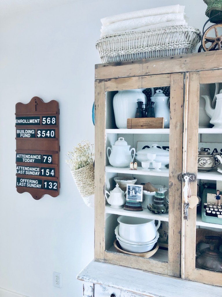 Happy Friday 🤍 #friday #weekendvibes #churchboard #antiquecabinet #ironstone #ironstonecrushin #entrywaydecor #old #antiques #handmedowncottage #furnitureattiffanys