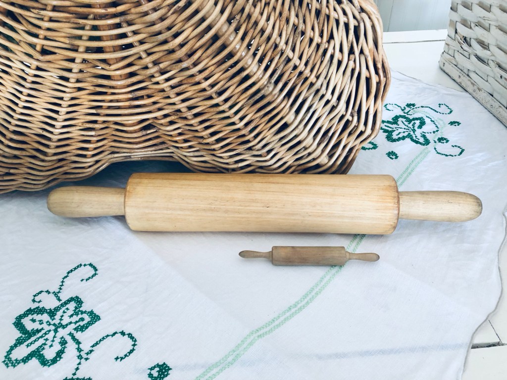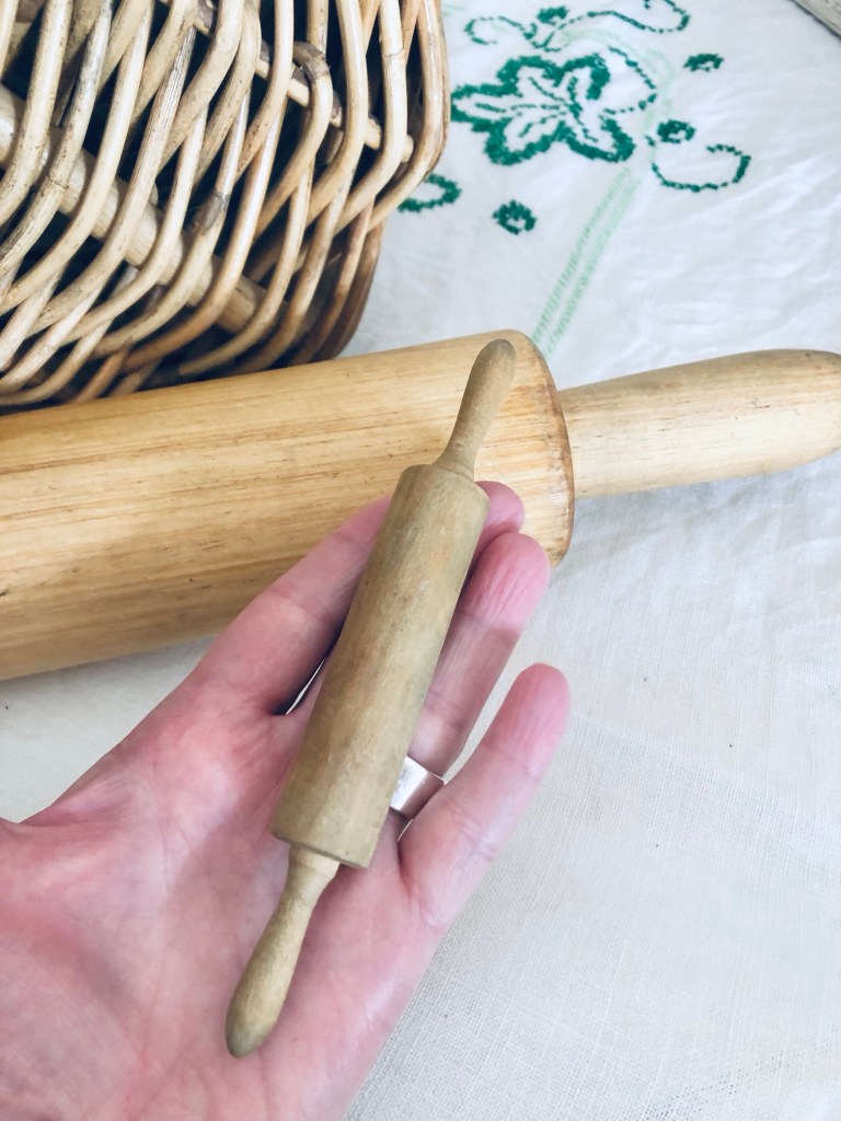 When you thrift the smallest rolling pin you’ve ever seen 😂🤍 I also found the large one! Strange day thrifting! #rollingpin #rollingpins #tiny #big #farmhouse #farmhousekitchen #vintage #dollsize #thriftstorefinds #deseretindustries #saturday #handmedowncottage #furnitureattiffanys
