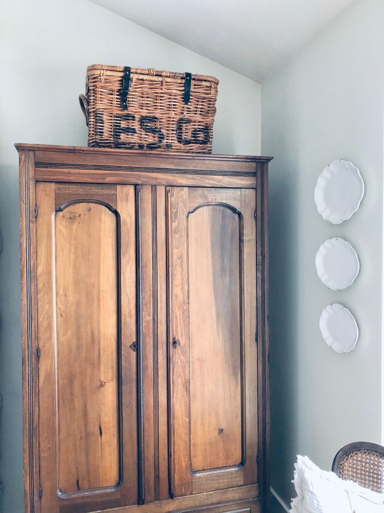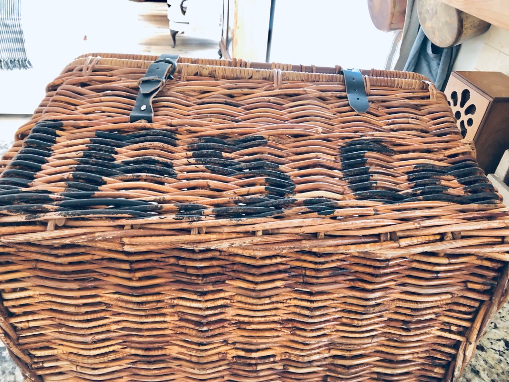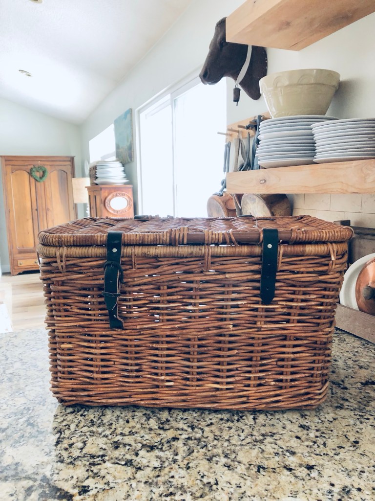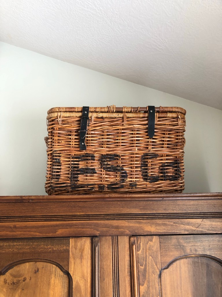 I thrifted this large basket for $5 on Friday! I wanted to give it an antique crate basket look soooo I painted some letters on it! What do you think? #handmedowncottage #furnitureattiffanys #basket #cratebasket #vintage #doityourself #therealonesarepricey #paint #deseretindustries #thriftstorefinds