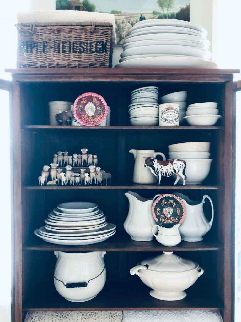 Happy Valentines Day sweet friends π I hope your day is full of love for others as well as for yourself π These sweet handmade valentines hung in my grandparents home. They are one of my most favorite treasures πππ #valentines #vintage #antique #handmade #family #grandparents #love #ironstone #cabinet #frenchbasket #happyvalentinesday #handmedowncottage #furnitureattiffanys
