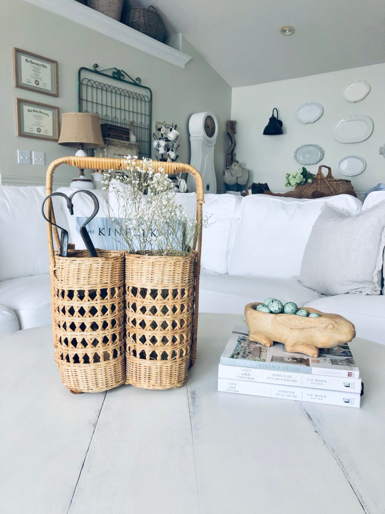 Good morning! We got so much snow last night! This winter has been 😩 but it just makes me appreciate spring more 😅 I thrifted this sweet vintage picnic/wine basket a month or so ago. I decided to style it on my coffee table. What do you think?? #imoverwinter #snowgoaway #utah #vintagebaskets #coffeetabledecor #springdecor #vintage #handmedowncottage #furnitureattiffanys