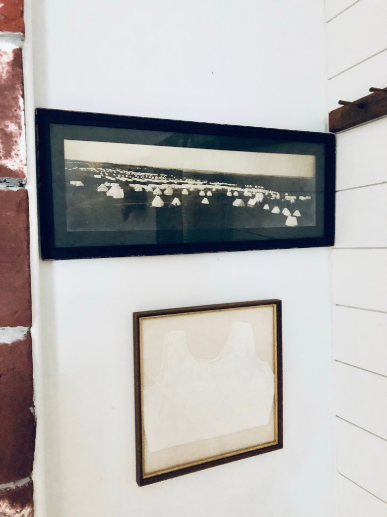 My sweet friend found this antique panoramic picture the other day thrifting. It looks like some sort of camp. I love all the white tents! And the bottom pic is my baby blessing slip framed 🤍 Happy Sunday 🤍 @deechz #antiquepanoramicphoto #panoramic #oldpic #camp #antique #entrywaydecor #entrywaybench #sunday #antiquepillows #handmedowncottage #furnitureattiffanys