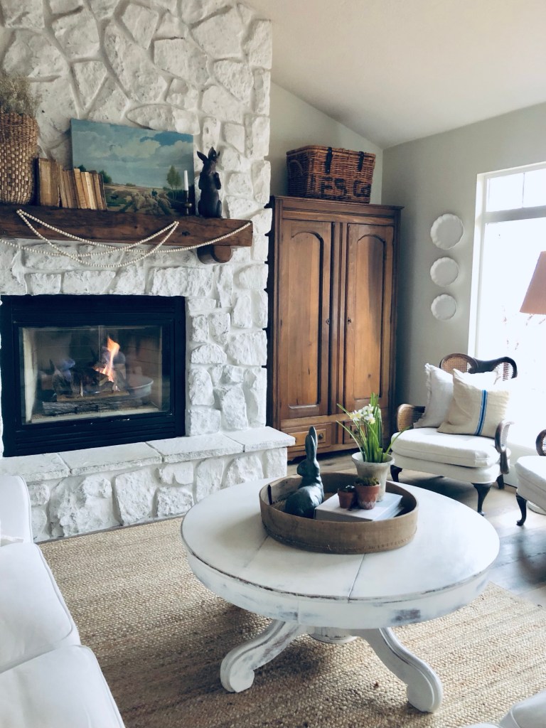 A fire on this cold dreary day ⛈️ #rain #march #springweather #cozy #homedecor #warmandcozy #staydry #whitedecor #familyroom #paintedfireplace #handmedowncottage #furnitureattiffanys