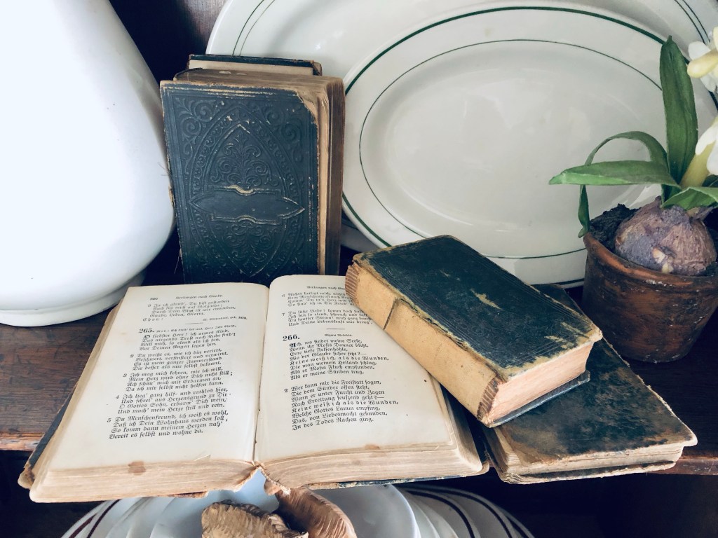 A closer look at the antique German hymn books I found a few weeks ago 🤍 what is it about antique books?! I just love them 🤍 #antiquegermanhymnbooks #hymnbook #german #germany #old #tattered #used #fallingapart #perfect #antiquebooks #homedecor #handmedowncottage #furnitureattiffanys #1800s