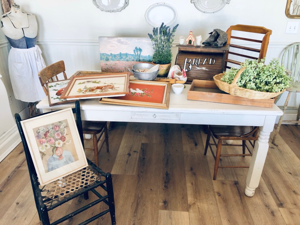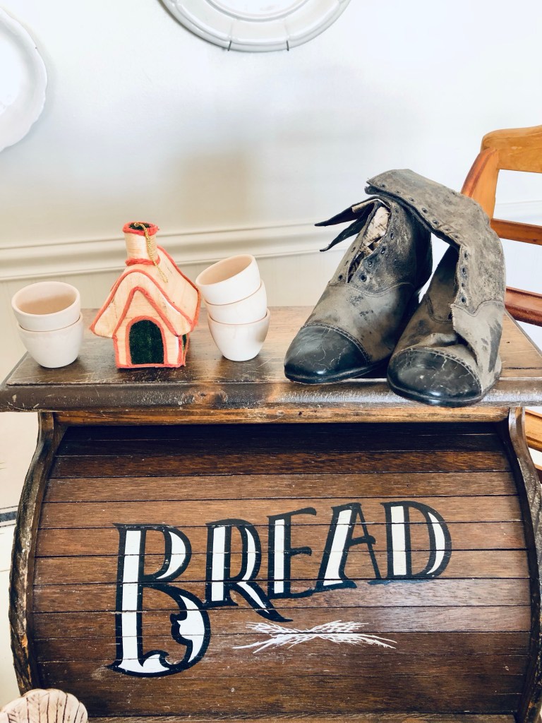 Todays thrift haul 🤍 what would be your fav? Mine is the pair of antique shoes!! #thriftstorefinds #thrift #therapy #vintage #antiqueshoes #old #art #needlepoint #breadbox #farmhousestyle #farmhousedecor #handmedowncottage #furnitureattiffanys #antiquechair #deseretindustries