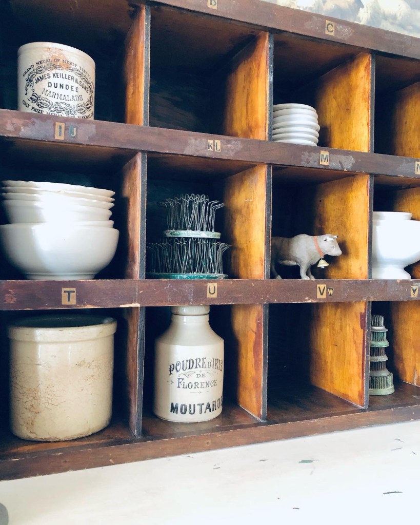 Sweet little addition to my mail sorter 🤍 #antiquemustardpot #french #frenchantiques #ironstone #transferware #vintagemailsorter #happywednesday #handmedowncottage #furnitureattiffanys
