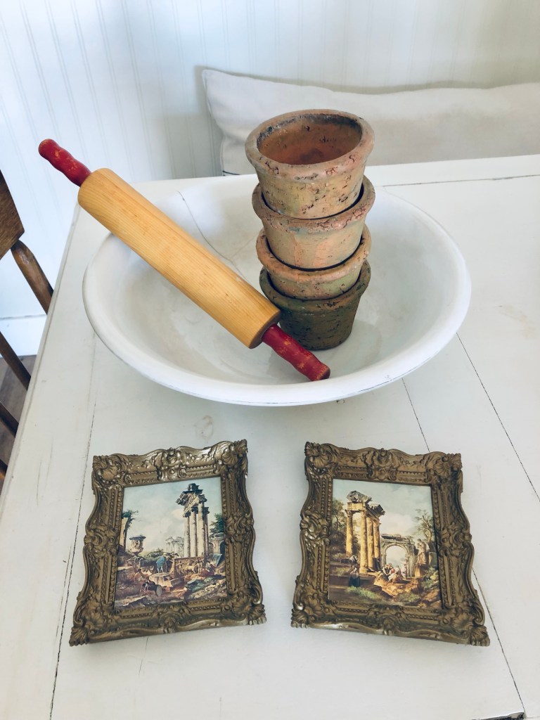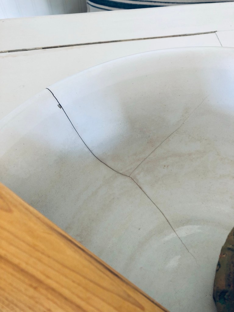 My thrift store finds today 🤍 The huge ironstone bowl was just sitting alone on a rack for $1!! The checker asked if I still wanted it because it had a crack… ummmm yes! I didn’t tell her that cracked and crazed ironstone is my favorite! #thriftstorefinds #deseretindustries #thriftingironstone #ironstonelove #seriouslyadollar #antique #vintage #ironstone #saturdaythrifting #handmedowncottage #furnitureattiffanys