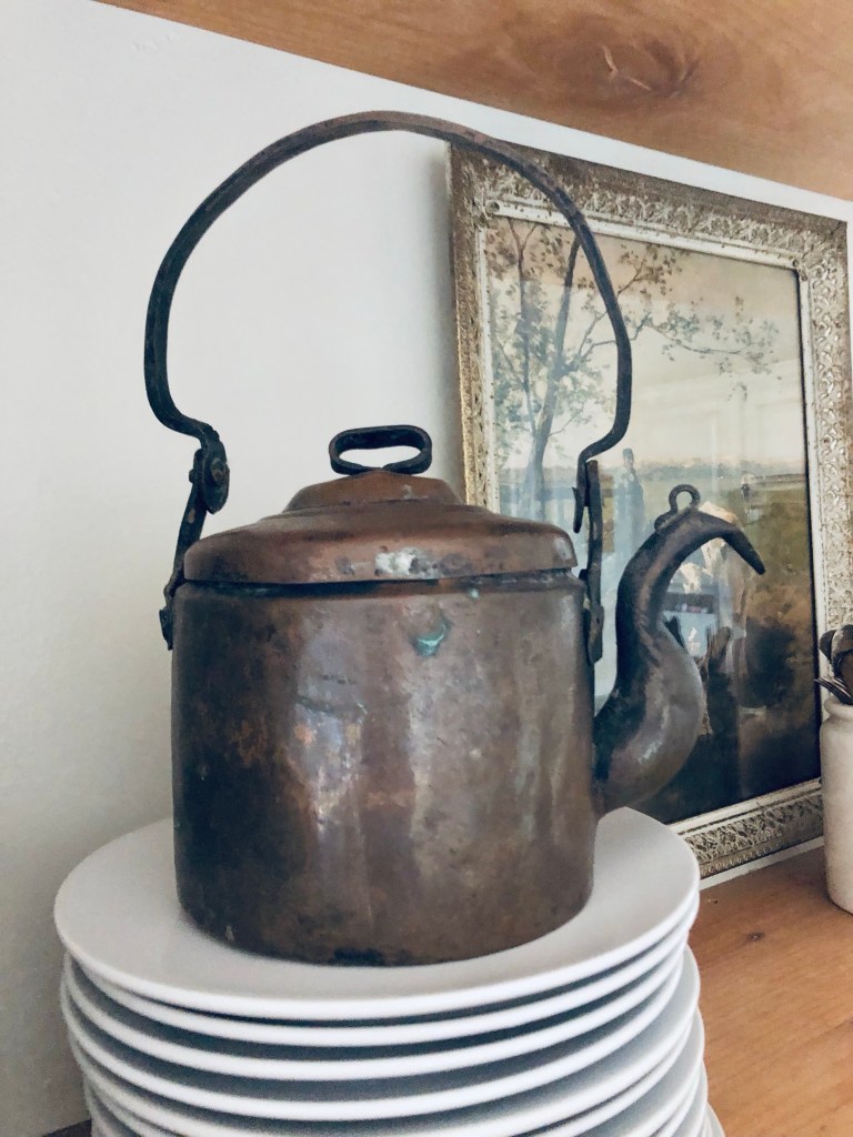 One of my most fav thrifted finds from a week ago… an antique hand made copper teapot 🤍 I looked it up and it’s from the 1850’s! Ahhh I love thrifting! #thriftstorefinds #thriftinyourhome #thrifting #therapy #homedecor #thriftedhome #antiquecopper #antiqueteapot #isntshelovely #handmedowncottage #furnitureattiffanys #deseretindustries