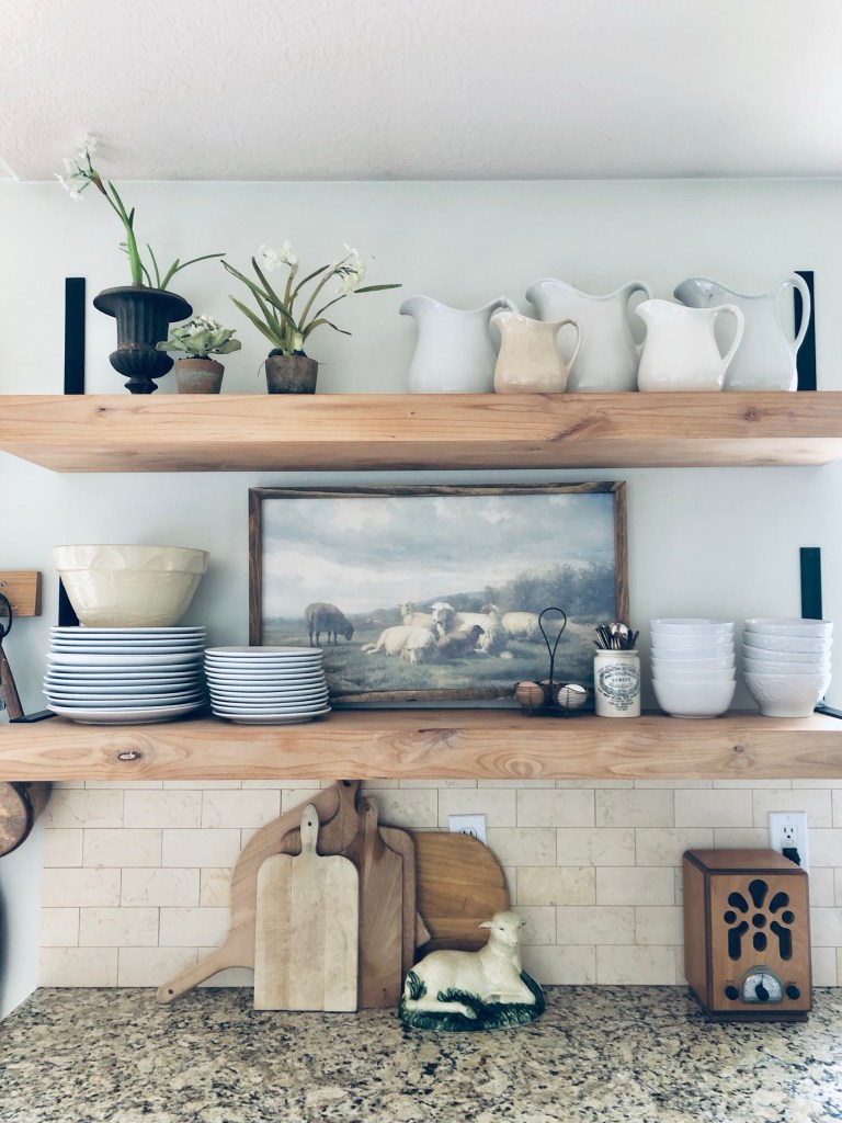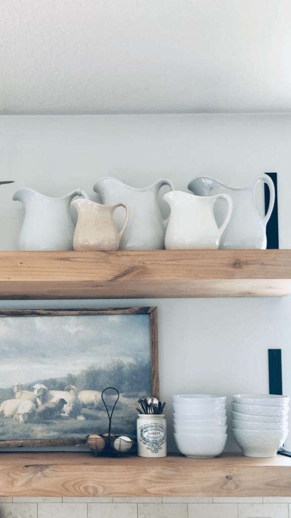 A little kitchen shelf cleaning and restyling 🤍🤍🤍 #kitchenshelves #cottagestyle #ironstone #ironstonecrushin #ironstonepitchers #collection #farmhousestyle #farmhousedecor #sheep #spring #springdecor #springcleaning #handmedowncottage #furnitureattiffanys #thrifted