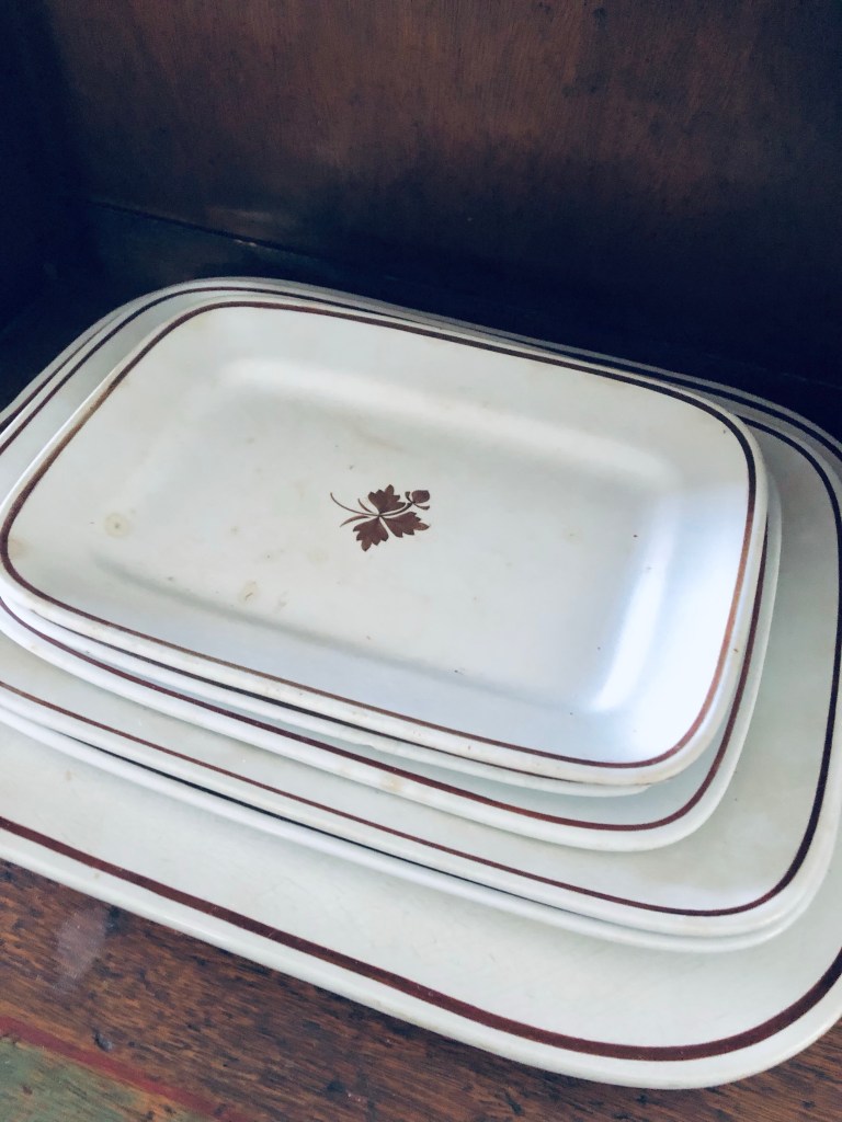 My tea leaf ironstone stack 🤍🌱 Not as tall but they are my fav! The large bottom one is a family piece which makes it all the more special 🤍 #ironstone #family #tealeaf #ironstonecrushin #ironstonelove #ironstonecollection #antique #antiqueironstone #antiquehutch #antiquecabinet #old #crazed #cracked #collection #handmedowncottage #furnitureattiffanys