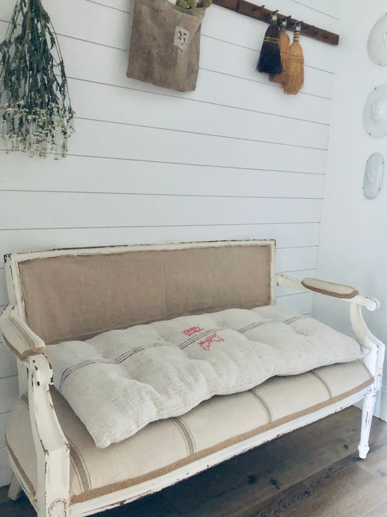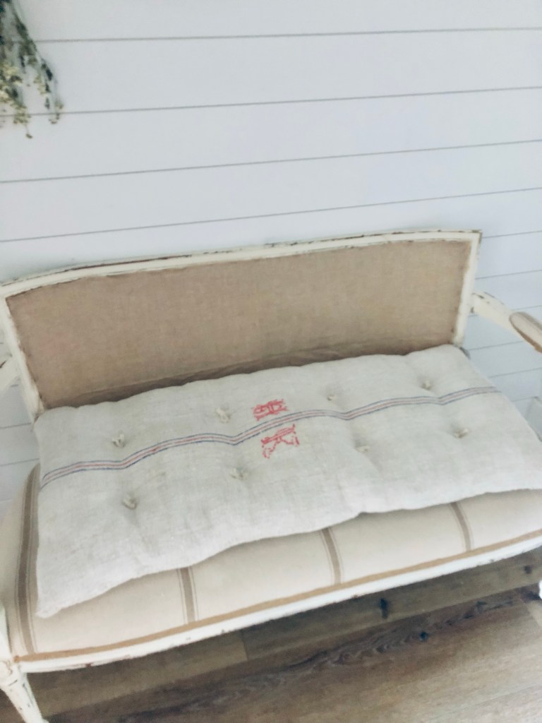 I’m completely smitten with this French antique cushion that arrived in the mail on Saturday ❤️ #french #antique #frenchantiques #entrywaybench #vintage #monogram #entrywaydecor #entryway #happymail #happymonday #mayday #handmedowncottage #furnitureattiffanys