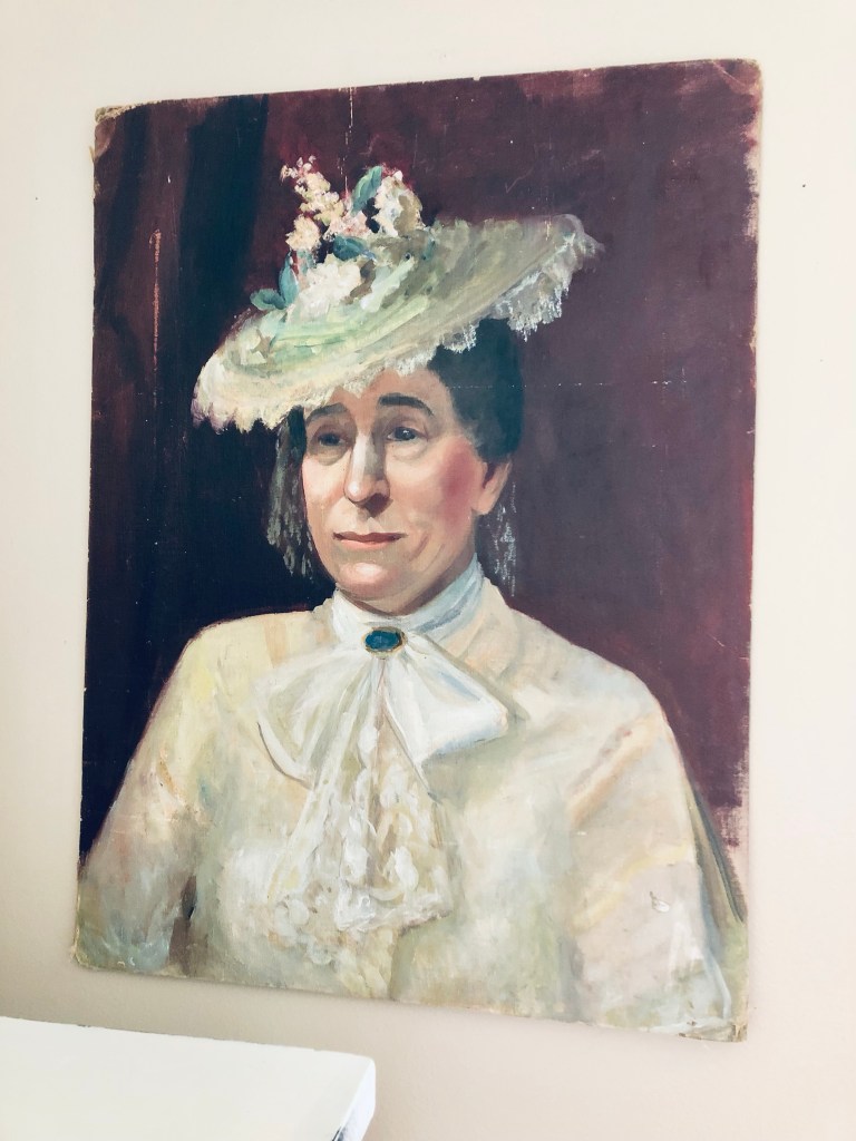 Meet Gertrude… my latest marketplace find ❤️ I’m loving old original portrait paintings at the moment. #portrait #painting #old #antique #marketplace #isntshelovely #handmedowncottage #furnitureattiffanys