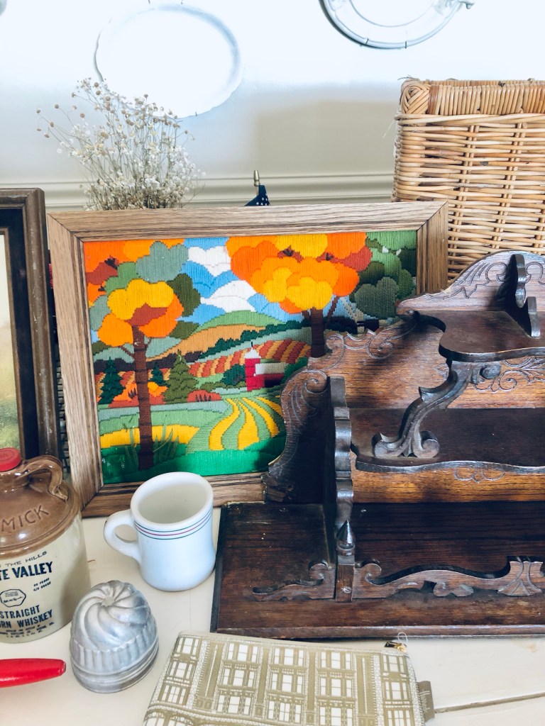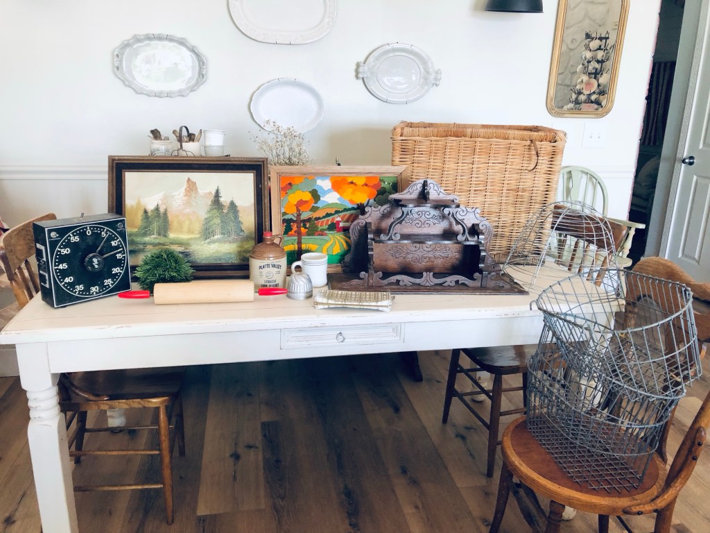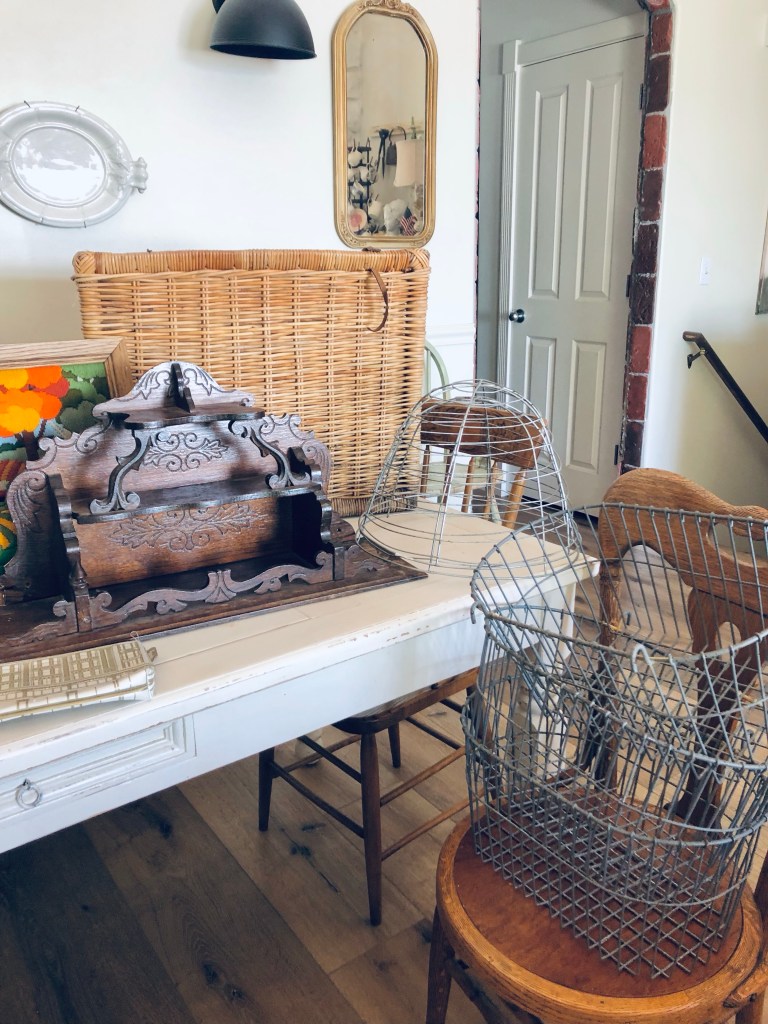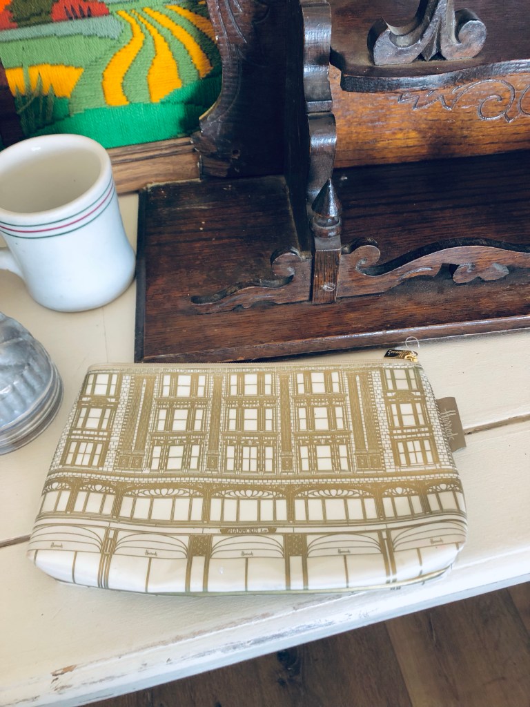 Todays thrift haul ❤️ Whats your fav? Mine is the Harrods makeup bag 🤍 #harrods #london #vintage #painting #baskets #thriftstorefinds #deseretindustries #vintagedeveloptimer #antique #handmedowncottage #furnitureattiffanys
