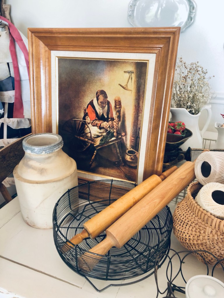 Todays #thriftstorefinds 🤍 Whats your fav? Mine is the basket full of embroidery thread! And tucked inside of one, a finished doily 🤍 How sweet is that? #vintagefinds #antiquefinds #art #politicalposter #oldposter #antiquecrock #halloween #basket #wirebasket #handmedowncottage #furnitureattiffanys #thriftedbaskets #thrifted #thrifting #therapy