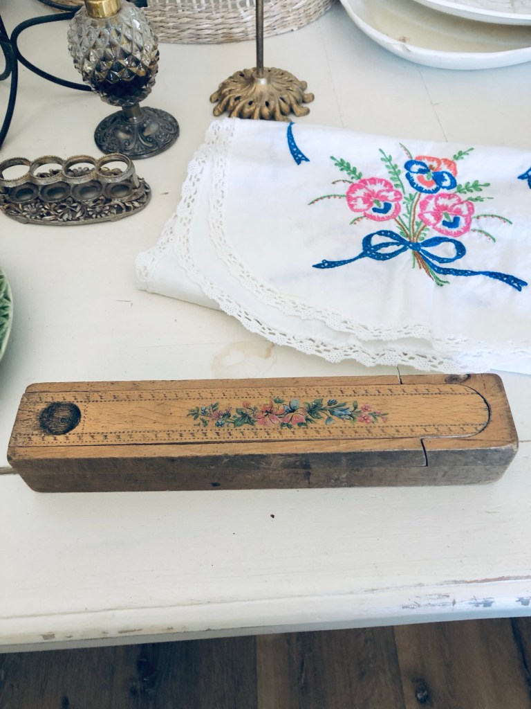 Todays haul 🩷 What would be your fav? Mine is the antique Victorian pencil box 🩷 #thrifting #thriftstorefinds #deseretindustries #victorian #antiques #pencilbox #basket #ironstone #eggbasket #lipstickholder #old #thrifttherapy #handmedowncottage #furnitureattiffanys
