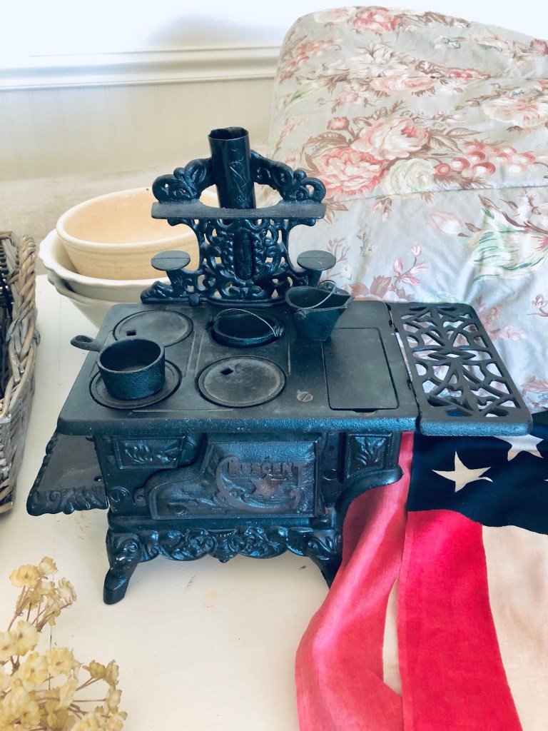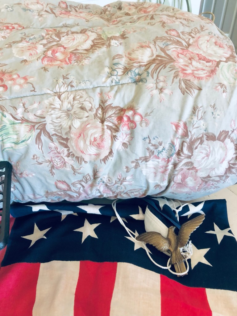 Todays haul 🤍 What’s your fav? Mine is the French wire basket 🤍 #vintageralphlauren #comforter #floral #ironstove #antique #salesmansample #flag #crewel #farmhouse #rollingpin #thrifting #thriftstorefinds #deseretindustries #tuesday #handmedowncottage #furnitureattiffanys