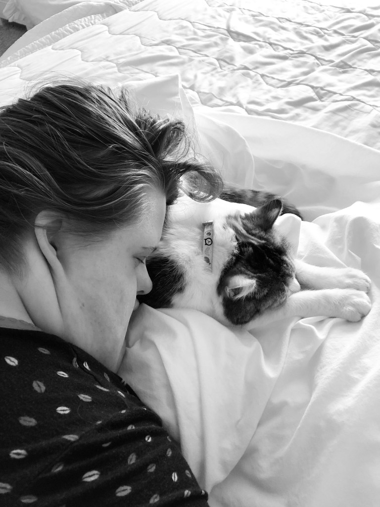 Just a girl and her kitty 🤍 #steviethegirlkitty #downsyndrome #downsyndromelove #agirlandhercat #snuggles #friday #handmedowncottage #furnitureattiffanys