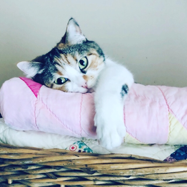 Happy Sunday 🤍 #steviethegirlkitty #sunday #sundaycatnap #catsofinstagram #cat #sillycat #loveher #oldquilts #basket #catbed #handmedowncottage #furnitureattiffanys
