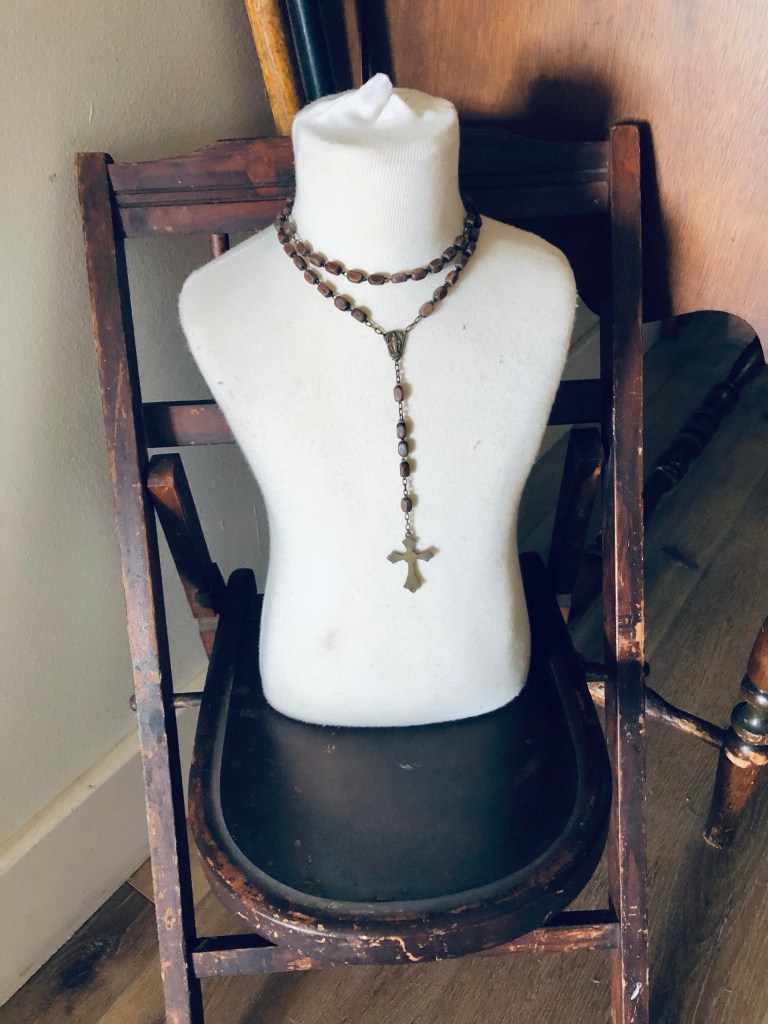I found this child’s mannequin bust thrifting last week…. I kinda love it 🤍 #mannaquin #vintage #antiquechair #childschair #homedecor #thrifted #styled #rosary #handmedowncottage #furnitureattiffanys