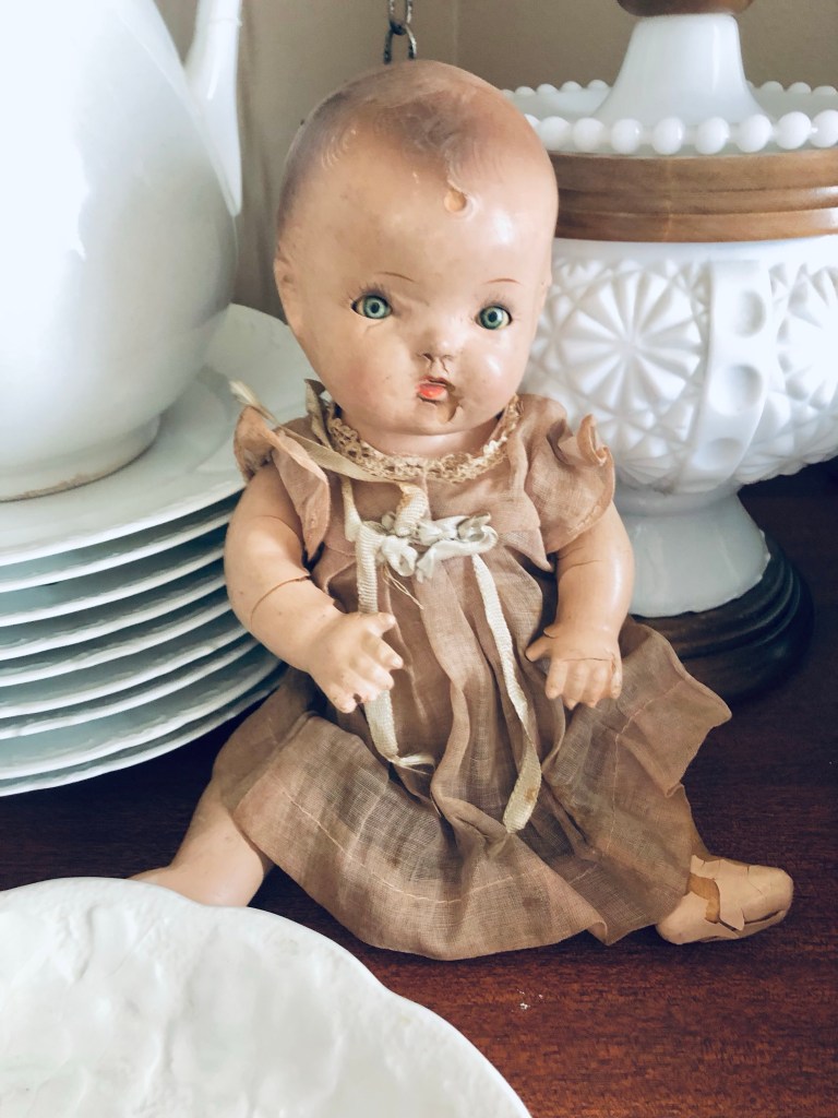 I had to share my antique doll… I love her! What do you think… scary or cute?