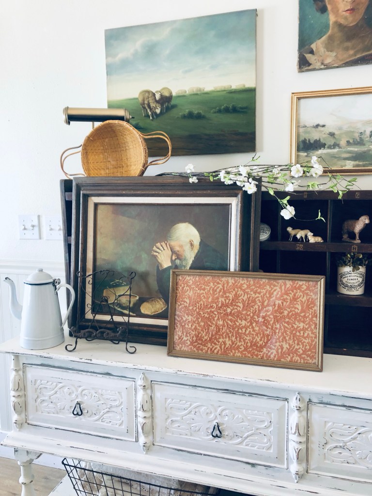 My small haul today 🤍 I found the perfect old frame for my print I got on Tuesday. Swipe to the end to see 🤍 I also got an antique small sofa… it’s granny chic haha! I’m sure I will deconstruct her someday, but not today 😅 I will share a pic of her tomorrow 🤍 #thrift #thriftstorefinds #antiques #vintage #art #frames #farmhousedecor #vintagedecor #handmedowncottage #furnitureattiffanys