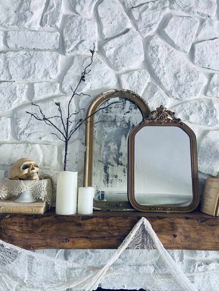 Well my old Abraham Lincoln painting was kinda freaking me out 😅 So I put my mirrors up. Which do you prefer? And I pulled out my antique doll buggy for my antique baby doll 🩷 #halloweendecor #antiquedoll #antiquebuggy #old #antiquemirror #fireplacedecor #mantledecor #whitefireplace #spooky #handmedowncottage #furnitureattiffanys