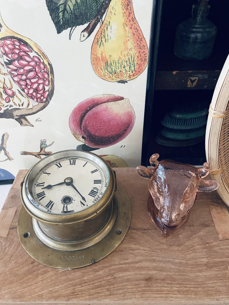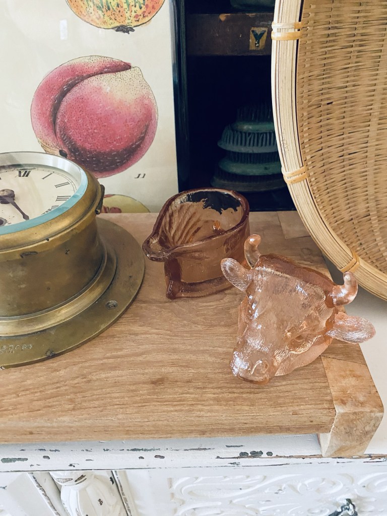 We took a whole truckload to donate to #deseretindustries today. So of course I had to run in and see if there were any treasures š This is what I found⦠what would be your fav? Mine is the antique brass ship clock š¤And have you ever seen pink depression glass in bull form? I have not ha! Isnāt he cute?š©· #thriftstorefinds #saturday #depressionglass #bull #vintage #shipclock #brass #antique #basket #happysaturday #handmedowncottage #furnitureattiffanys