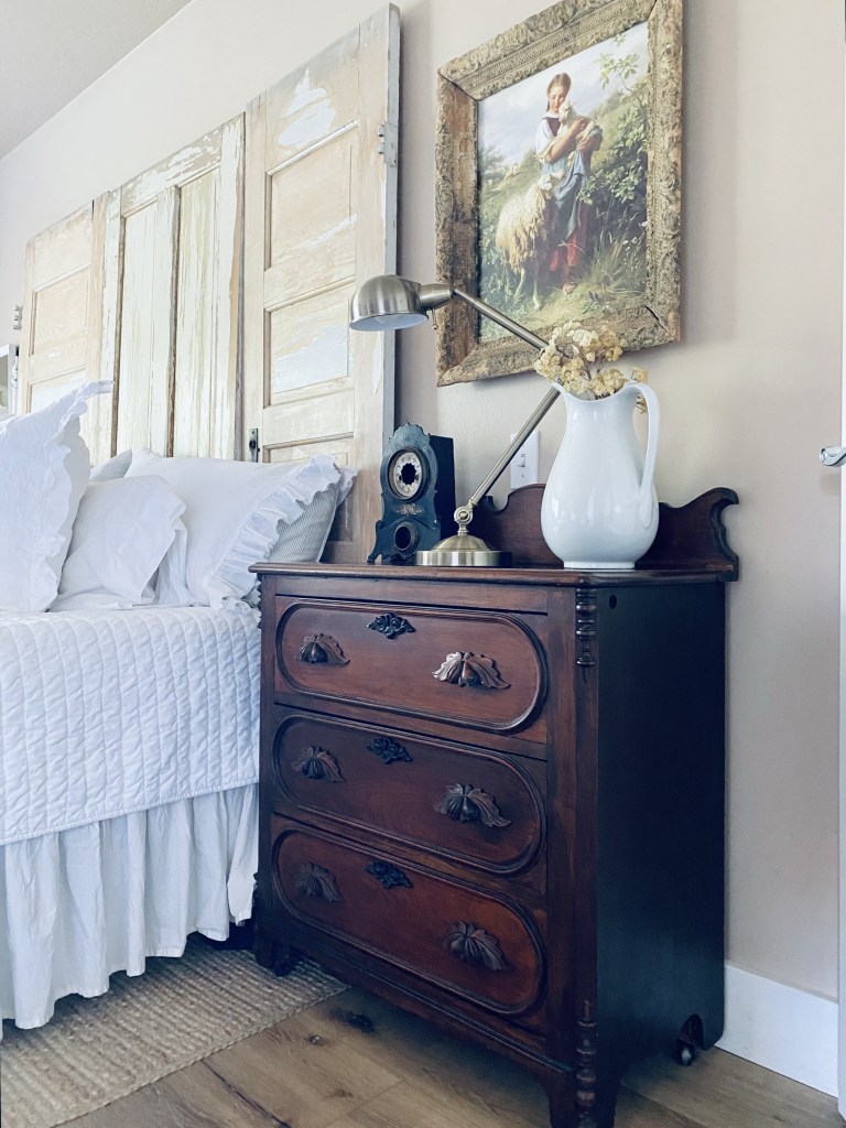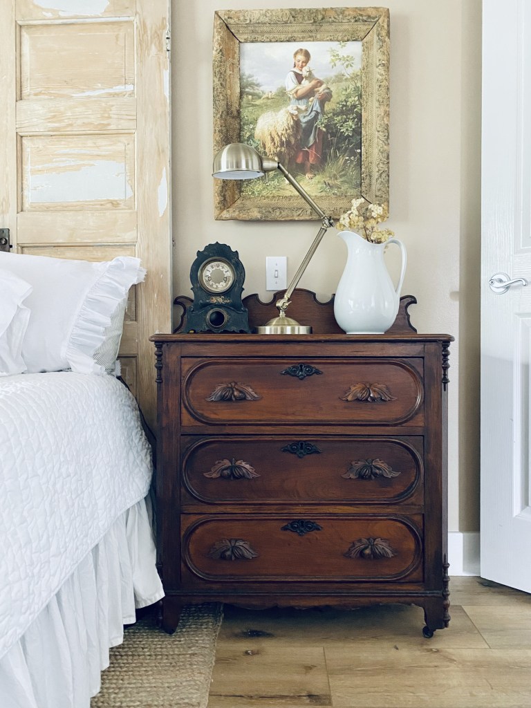 My new to me little antique dresser 🤍 I always want to change things around… anyone else?? #antiquefurniture #changeisgoodforthesoul #antiques #vintage #nightstand #dresser #furniture #handmedowncottage #furnitureattiffanys