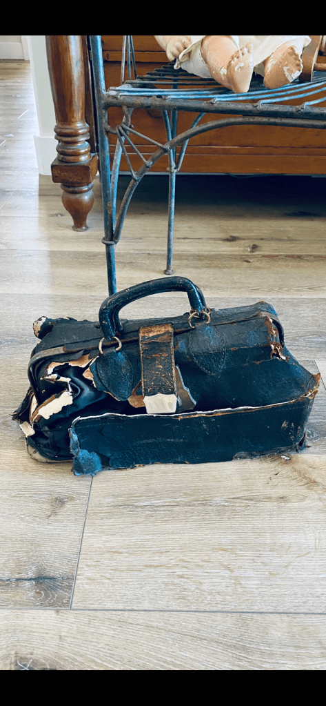 My sweet finds from #fleaology23 this morning ❤️ Such a fun market! #antiquedoll #antiquefrenchcuttingboard #drbag #old #tattered #eggbasket #ironbench #fleaology #fall #fleamarketfinds #handmedowncottage #furnitureattiffanys