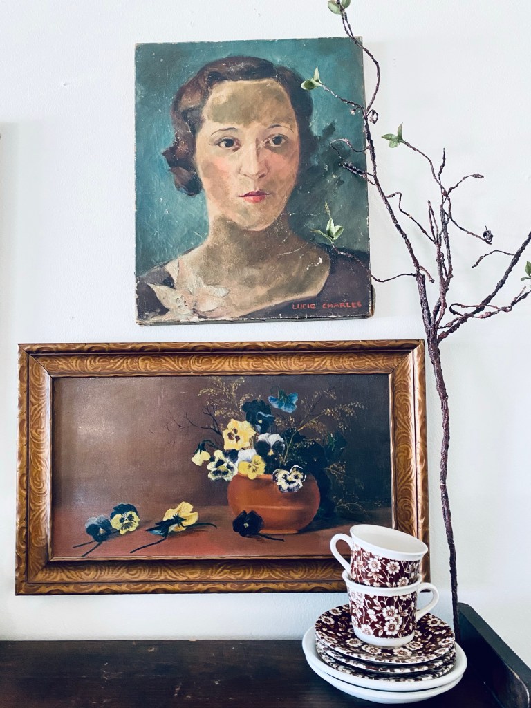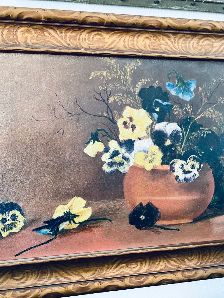 How fabulous is this antique pansy oil painting I found on marketplace 🤍#pansy #oilpainting #antique #loveit #love #marketplace #handmedowncottage #furnitureattiffanys