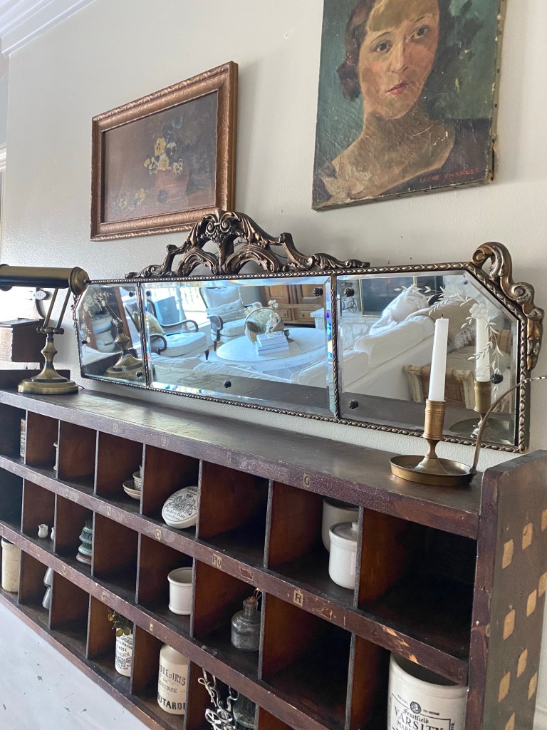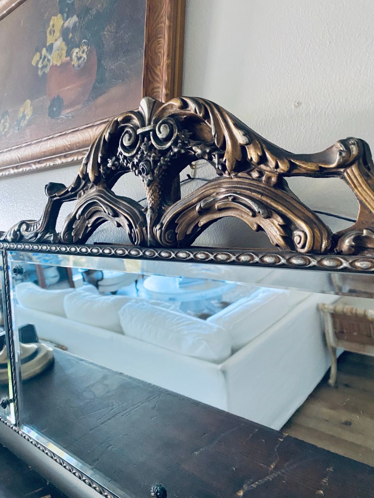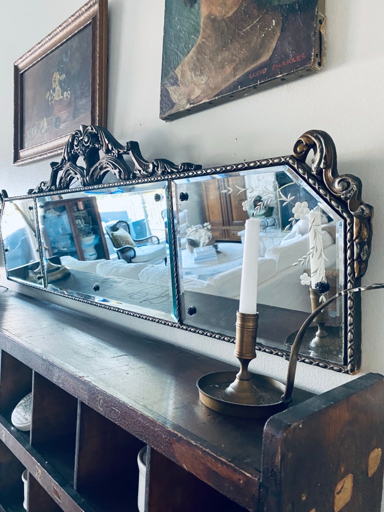 My only find while thrifting yesterday… but I’m ok with it 😍🤍 #antiquemantlemirror #antiquemirror #deseretindustries #thriftstorefind #score #old #saturdaythrifting #handmedowncottage #furnitureattiffanys