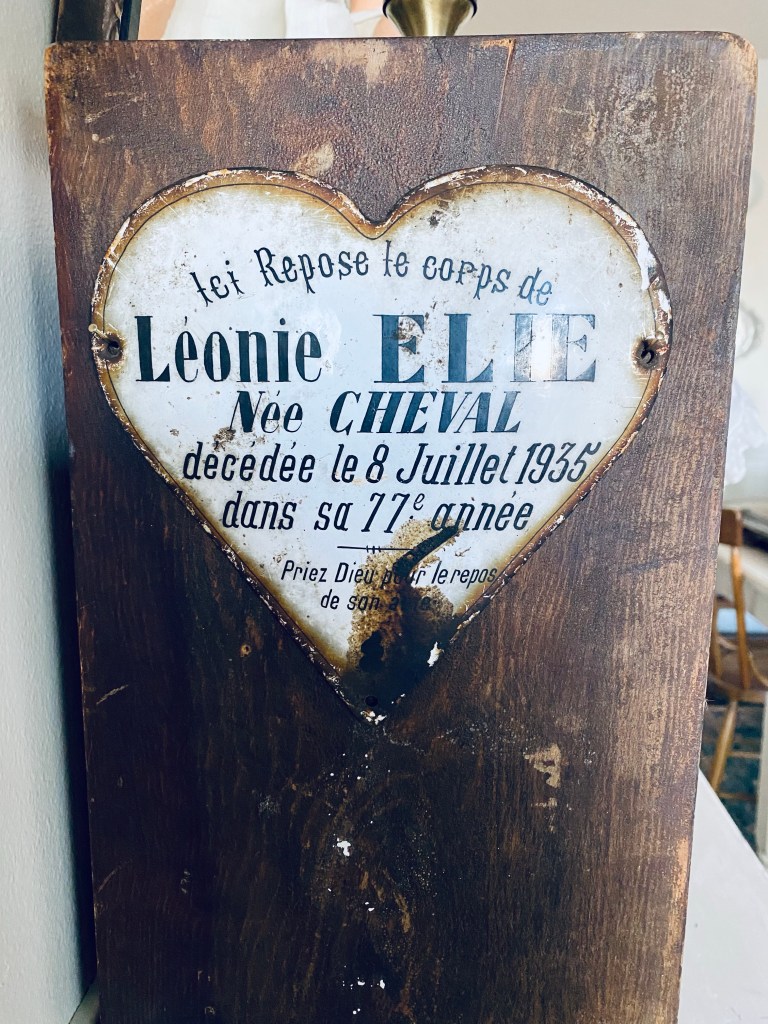 This may be a little morbid… but I’ve always loved these! And I finally found one I could afford 😅🤍 Isn’t she a beauty?? #frenchenamel #gravemarker #old #oldstuff #french #handmedowncottage #furnitureattiffanys