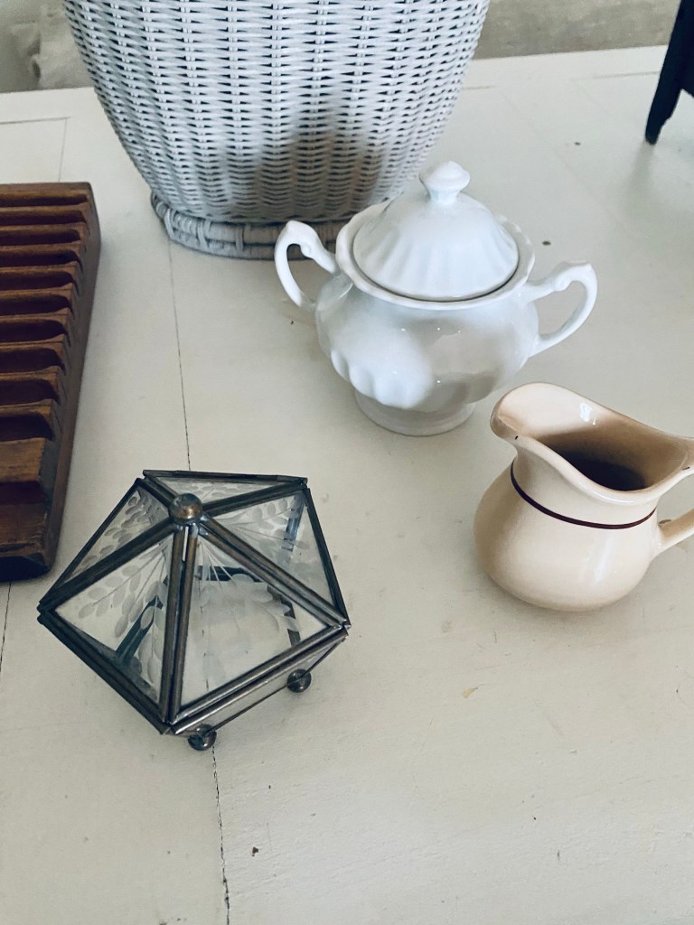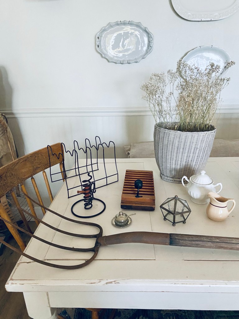 My small haul today 🤍 what is your fav? Mine is the antique cigar mold #thriftstorefinds #deseret #smallhaul #thrift #thrifting #tuesday #antique #vintage #homedecor #pitchfork #ironstone #handmedowncottage #furnitureattiffanys