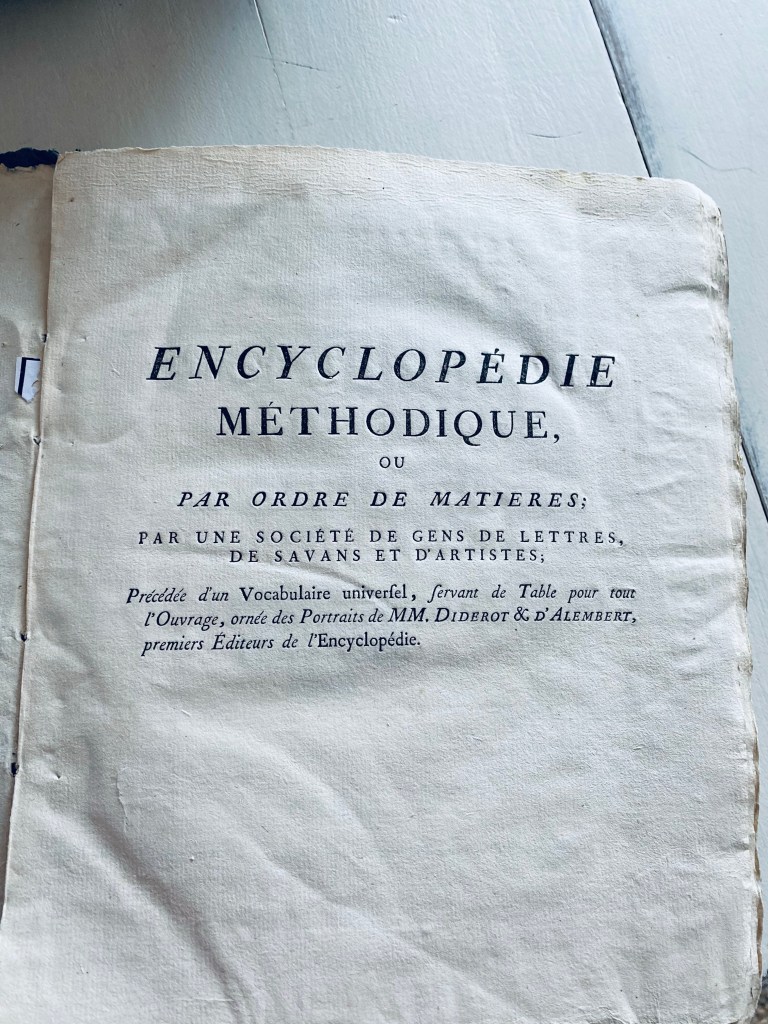I got some happy mail today 🤍🤍🤍 My sweet new friend @bellwetherslanding and I did a little trade… this is what I got! An antique French encyclopedia from the 1700’s! I’m totally smitten 🤍 #antique #antiqueencyclopedias #french #iloveit #newfriend #old #oldbooks #antiquebooks #happymail #happymonday #handmedowncottage #furnitureattiffanys